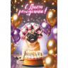 Открытка А5 "С Днём рождения!" мопс арт.1804762