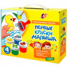 Краски пальчиковые 4 цвета КРОХА 40мл/баночки Первые краски малыша с аксессуарами роллер,спонжик, лоток (ЛУЧ) арт.34С 2256-08